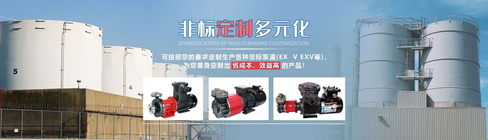 可根據(jù)您的工藝需求定制特殊電壓(V)、頻率(HZ)、防爆(EX)、防爆(EX)+變頻(V)等特殊產(chǎn)品,批量個(gè)性化定制開(kāi)發(fā)等,給您提升效率,降低成本。不斷追求技術(shù)創(chuàng)新、得到更多企業(yè)認(rèn)可。公司產(chǎn)品包括旋渦磁力泵、輕型離心磁力泵、化工離心磁力泵、襯氟磁力泵、精密旋渦泵、大流量離心泵、小型高壓葉片泵、不銹鋼多級(jí)泵、立式管道泵等;產(chǎn)品耐溫范圍從低溫-196℃到高溫+400℃,涉及化工、環(huán)保、印染、醫(yī)藥、半導(dǎo)體、新能源、汽車(chē)、電子、軍工、食品、石油和通用機(jī)械等行業(yè)領(lǐng)域。